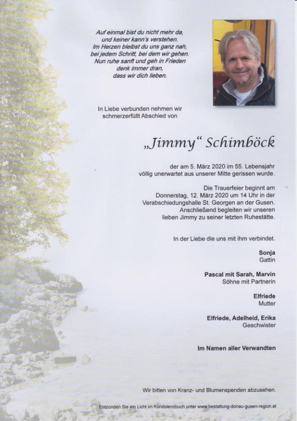 Wer im Herzen liebevolle Erinnerungen hinterlässt und unsere Seele berührt, kann weder vergessen noch verloren gehn…. Lieber Onkel Jimmy in unseren Herzen bist du bei uns und in ewiger Erinnerung. Carmen und Andreas