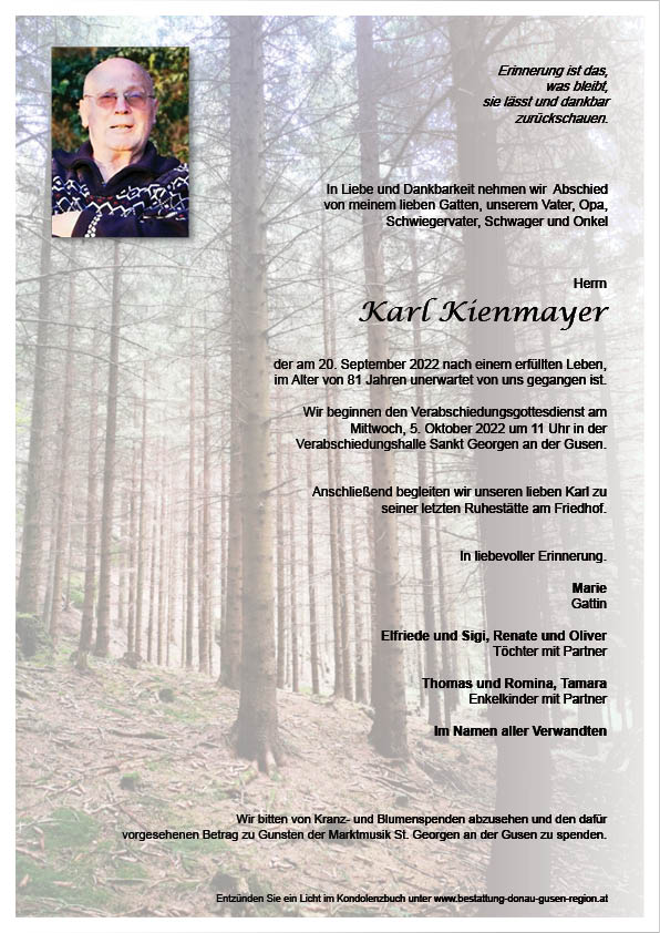 Ein herzliches Beileid wünscht Euch Fritz Kreuzer!